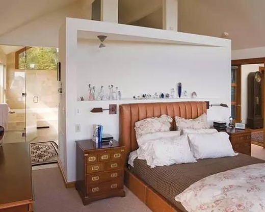 收納設(shè)計。臥室床頭空間可以作為收納設(shè)計,既為背景墻增加設(shè)計感,又能增添一處方便的收納之地,讓床頭柜成為一個完全裝飾的小單品。