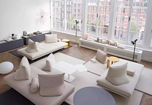 如果你平常想要放松的生活,舒適的休閑空間,那就可以放棄笨重的大沙發(fā)和占地方的茶幾,可以使用單人沙發(fā)加上座椅的方式來滿足自身的需求,讓空間更靈動;