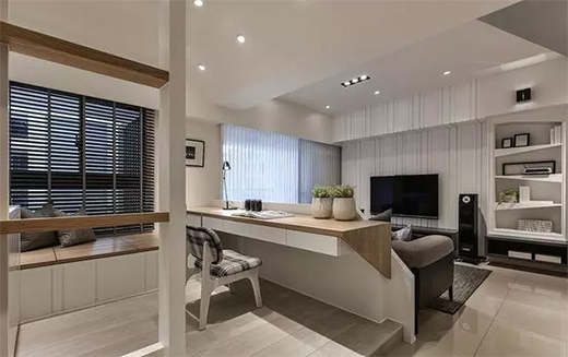 書房做了地臺造型,然后與客廳就以一張定制的書桌為隔斷