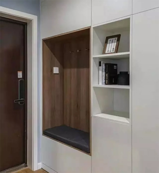 在玄關(guān)鞋柜中設計一個舒適的換鞋凳似乎是絕大部分家庭都會選擇的一種設計了。的確,這樣的一個設計可以讓家人坐著舒適的換鞋,這也是一種舒適的生活細節(jié)的體現(xiàn)。