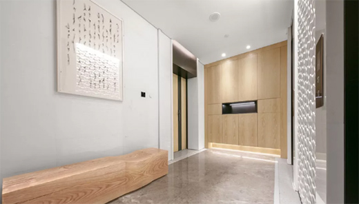 以白色墻面為主,融入原木質(zhì)玄關(guān)柜以及卡座,簡約中透露著自然的生命張力;曲線波紋的墻面設(shè)計,猶如此起彼伏的水波,給空間提供韻律感。