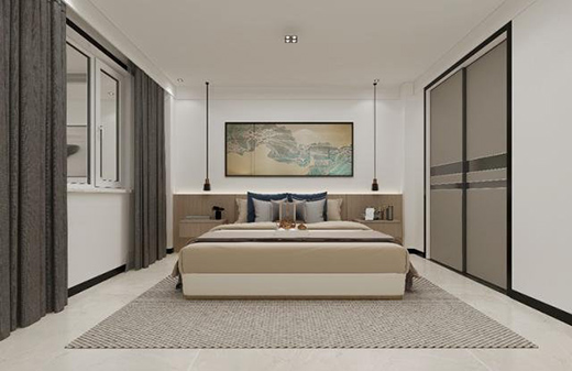 老人喜歡寧靜愜意的氛圍,所以在用色上比較淡雅,以白為主,素雅安適。一幅靜謐的江南水墨畫,更顯沉穩(wěn)清透。衣柜選擇移門的形式,節(jié)省空間,又帶有一絲禪意。