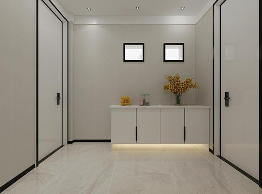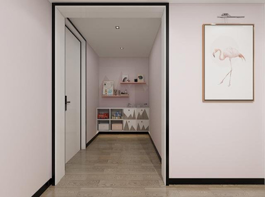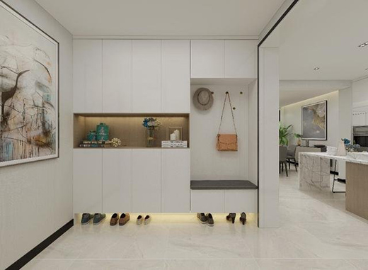 入門左手邊設計一排長長的高柜,設置更多的收納空間,滿足業(yè)主鞋子包包等儲物需求。
