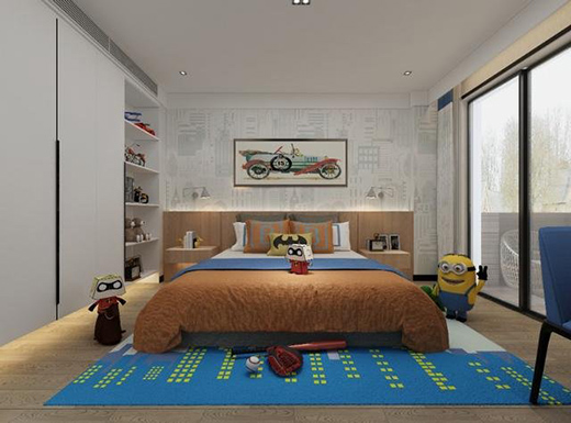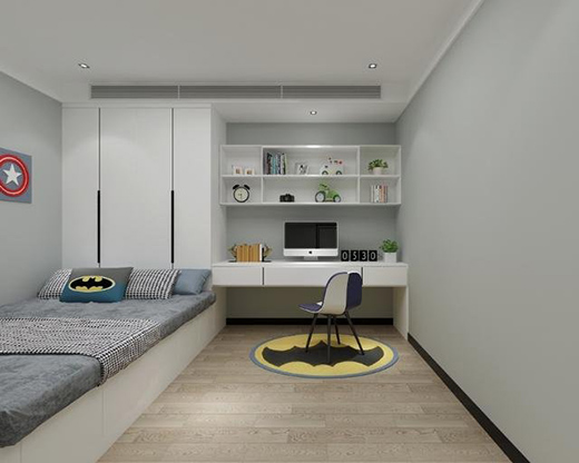 粉嫩的兒童房無論是色彩還是家居處處都透露出少女心,而兩側床頭柜除了配合設計感,也從實用出發(fā)方便業(yè)主女兒的學習及生活。