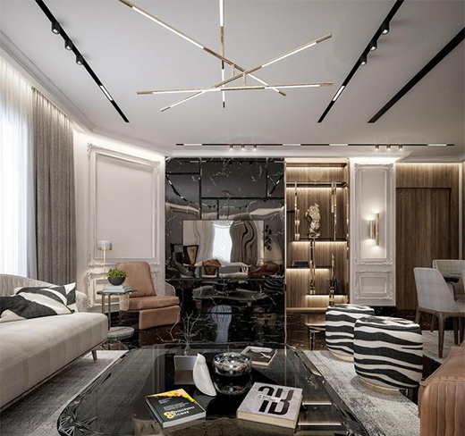 黑金配色 · 法式輕奢風復式室內(nèi)裝修設計
