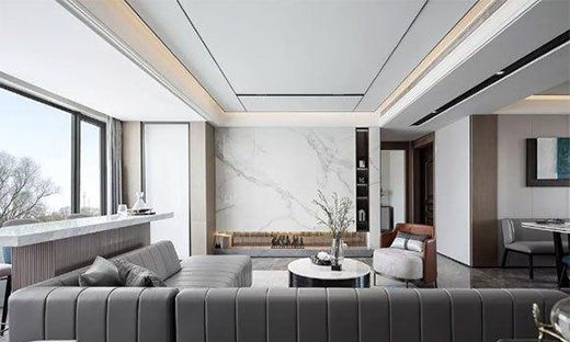 現(xiàn)代風(fēng)格為主的大戶型空間,利用石材、裝飾條和金屬元素來點(diǎn)綴,再配上當(dāng)下非常流行的莫蘭迪配色,營造出的家居環(huán)境不僅時(shí)尚大氣也特別高級(jí),而且還有種輕奢風(fēng)的優(yōu)雅格調(diào)。下面就和大家一起來看看這套采用莫蘭迪配色特別高級(jí)的現(xiàn)代風(fēng)格裝修設(shè)計(jì)案例!