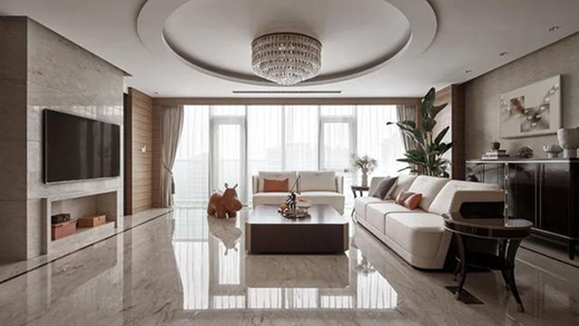客廳的設(shè)計是以極具質(zhì)感的大理石為主的背景,搭配優(yōu)雅的墻面色系,白色沙發(fā)皮質(zhì)細膩柔軟,又恰到好處的平衡空間色彩,加上不經(jīng)意擺放的各類擺件,悄然流露出居住者的藝術(shù)品位。