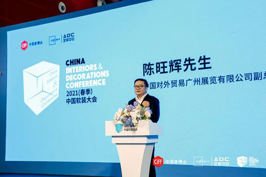 中國對外貿(mào)易廣州展覽有限公司副總經(jīng)理陳旺輝先生提到2021年(春季)中國軟裝大會,是家博會與藝展中心精心打造的設(shè)計盛事之一,目的是共同為當(dāng)前中國家居設(shè)計產(chǎn)業(yè)的升級發(fā)展出謀劃策。