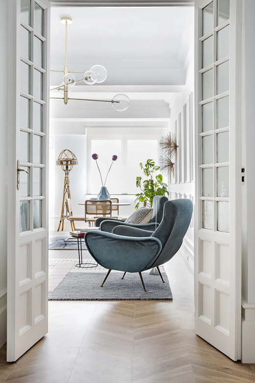 客廳和飯廳通過推拉門相連,即使關閉,推拉門也能保持視覺上的統(tǒng)一。