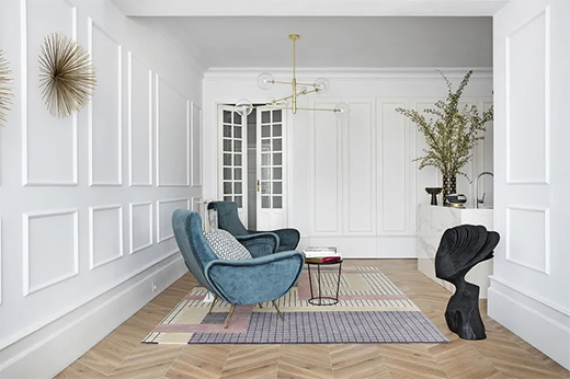 簡約的外觀,地板和墻壁上的裝飾線條非常引人注目,充分利用光線,陽光舒適。
