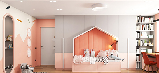 我們在設(shè)計兒童房的時候,一方面應(yīng)充分考慮孩子的性格。根據(jù)孩子不同的性格選擇不同的色彩。另一方面也要充分考慮孩子性別上的差異,一般男孩比較喜歡藍(lán)色系,而女孩則比較喜歡粉色系,因此我們在兒童房的選擇上必須有所區(qū)別。如果孩子還沒有出生的,我們可以選擇一些中性色調(diào)進(jìn)行裝修,之后根據(jù)孩子的性別選擇顏色合適的軟裝裝飾空間就可以。