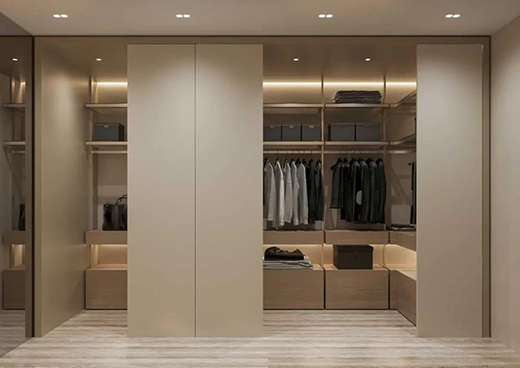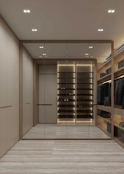 衣帽間的設(shè)計充分考慮到主人的實際使用情況,有良好的收納功能,明確的劃分好掛衣區(qū)、疊放區(qū)、鞋包區(qū)等不同區(qū)域,讓衣帽間繁而不亂。