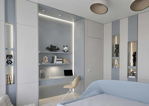 淺藍(lán)色的兒童房設(shè)計得非常漂亮,很清新,錯落有致,很有層次感,色彩搭配呈現(xiàn)出來的優(yōu)雅的氣息。