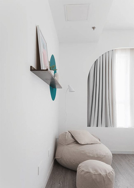 ▲ 床尾布置懶人沙發(fā)、落地?zé)?,成為休憩一?/p>