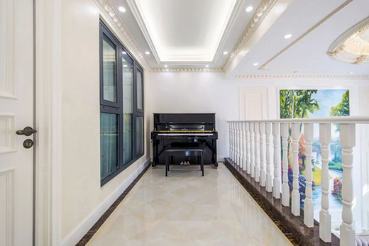 走廊過道盡頭擺放一套鋼琴,就是一個開放式的鋼琴室了