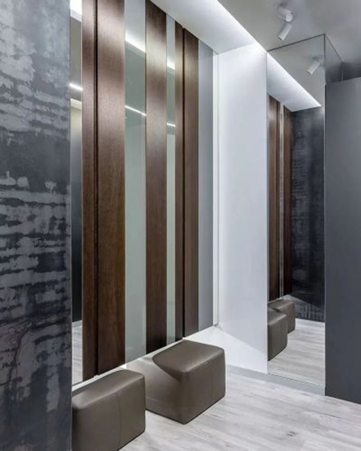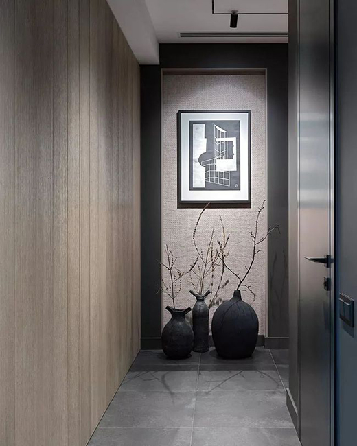 業(yè)主想要一個帶有木制家具的單色黑白內(nèi)飾,作為走廊和客廳的墻壁裝飾,還使用了帶有垂直關(guān)節(jié)的石膏板。裝飾中使用了不同質(zhì)地和特性的材料-木材、瓷器、大理石、石膏、玻璃,所有這些都旨在營造一種環(huán)保感和室內(nèi)意識。