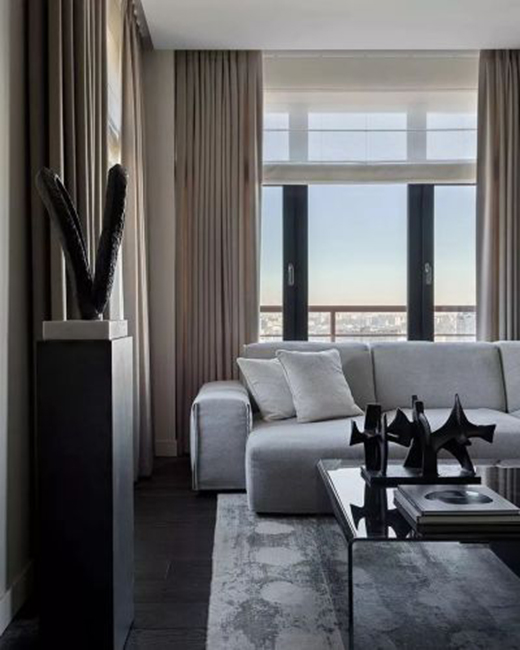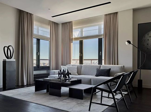 Marina Platonova和Oksana Grushko設(shè)計了一個80㎡的空間,業(yè)主是一個年輕人,熱愛當(dāng)代藝術(shù),尤其喜歡至上主義和建構(gòu)主義。該公寓位于莫斯科Presnensky區(qū)一棟新建筑的19層。大量的陽光從大窗戶射進來,還可以欣賞到城市的美景。