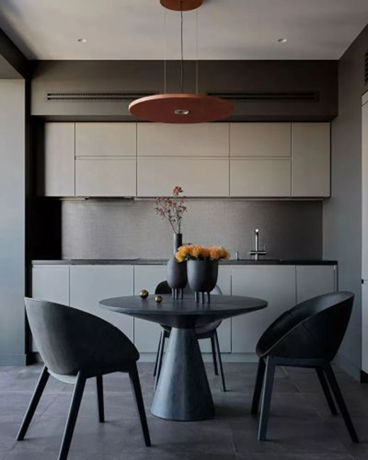 線條嚴(yán)謹(jǐn)?shù)膹N房套裝采用中性色設(shè)計。