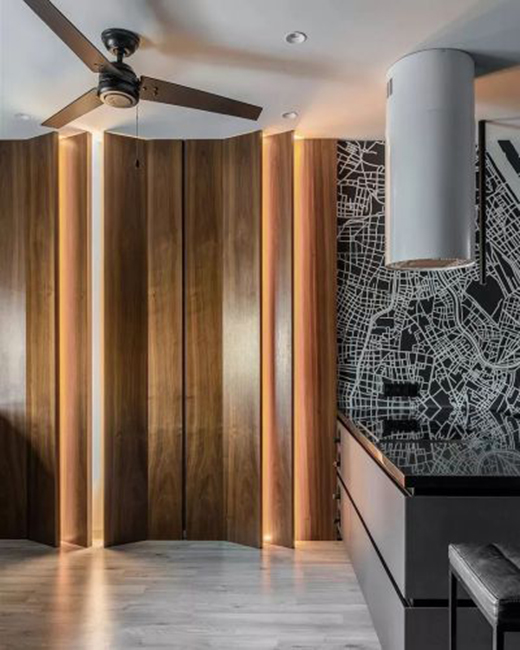 冰箱和烤箱隱藏在右側(cè)的壁龕中,不干擾空間的整體感知。