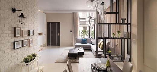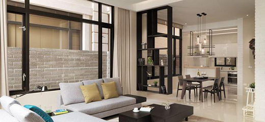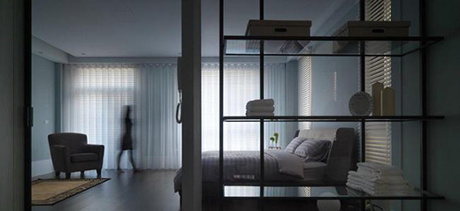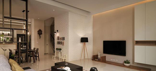 客廳開放式的鐵藝置物架去可以放置很多的擺件和綠植,既起到了隔斷的作用還不會阻擋室內(nèi)的光線和通風(fēng),也是很實(shí)用的一處設(shè)計,懸空的設(shè)計和客廳的儲物柜形成呼應(yīng)。