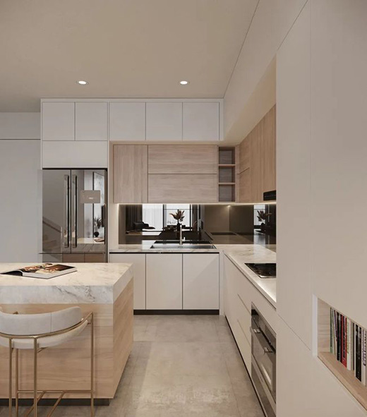 市面中常見的臺面材質有:大理石臺面、石英石臺面、超薄巖板等,其中,石英石臺面品質好、顏值高、可適用不同廚房風格的設計,而廣受大家的喜歡。