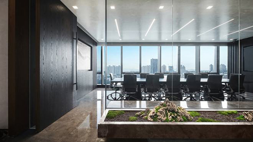 和一般裝修風(fēng)格不一樣的是,工業(yè)風(fēng)格的吊頂是非常有特色的,在辦公室裝修設(shè)計(jì)中,吊頂可采用具有灰粒質(zhì)感的灰色作為主要顏色,同時(shí)采用條形疊加的框架設(shè)計(jì),不同深度的框架、深淺不一的灰色讓屋頂具有很好的層次感,同時(shí)又具有濃濃的工業(yè)味道,就連辦公室吊頂也能運(yùn)用起來(lái),采用工業(yè)風(fēng)格燈具能夠烘托出工業(yè)風(fēng)格的特性。