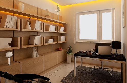 簡(jiǎn)潔線(xiàn)條的書(shū)房設(shè)計(jì),選用了淺色的地板,百葉窗簾,簡(jiǎn)單式的沙發(fā),書(shū)房非常舒服。