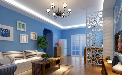 藍白條紋的客廳背景墻紙,是地中海風格的常用表達方式,加上藍色的布藝沙發(fā),精美的鐵藝吊燈。濃濃的地中海風味溢滿整個客廳,你就再也感覺不到夏日的浮躁了。