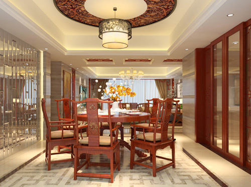 中式餐廳有意味著全家團聚、熱鬧喜慶,除了滿足基本生活需要,還被賦予了太多感情。裝修設計要講究對稱、方圓有致,招待貴客、朋友更是顯得禮貌。