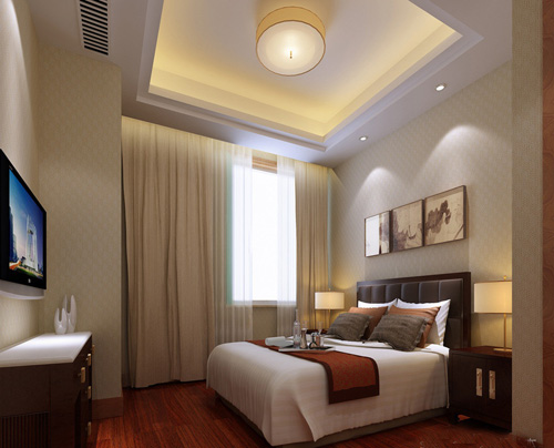 臥室的功能主要是睡眠休息,屬私人空間,不向客人開放,所以臥室裝修不必有過多的造型,通常也不需吊頂,墻壁的處理越簡潔越好,通常刷乳膠漆即可,床頭上的墻壁可適當做點造型和點綴。臥室的壁飾不宜過多,還應與墻壁材料和家具搭配得當。臥室的風格與情調主要不是由墻、地、頂?shù)扔惭b修來決定的,而是由窗簾、床罩、衣櫥等軟裝飾決定的,它們面積很大,它們的圖案、色彩往往主宰了臥室的格調,成為臥室的主旋律。