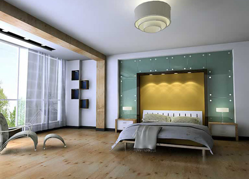 盡量不要使用裝飾性太強的懸頂式吊燈,主要燈源外,還應設臺燈或壁燈,以備起夜或睡前看書用。另外,角落里設計幾盞射燈,以便用不同顏色的燈炮來調節(jié)房間的色調,如黃色的燈光就會給臥室增添不少浪漫的情調。