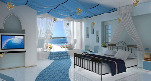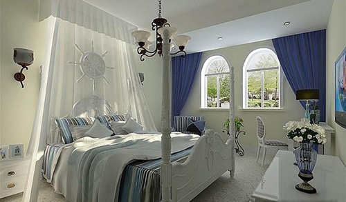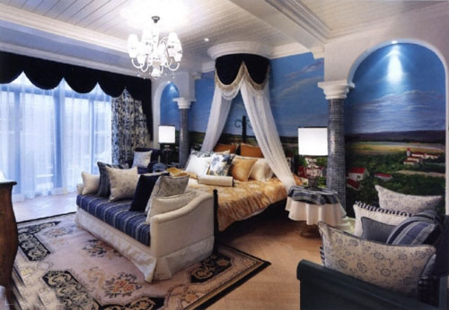 地中海風(fēng)格的別墅臥室設(shè)計(jì),通過華美家具家裝,清新素雅的古典家居的古舊風(fēng),營造出與戶主高雅的氣質(zhì)、品味相得益彰的濃郁藝術(shù)氛圍。