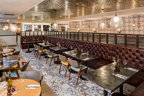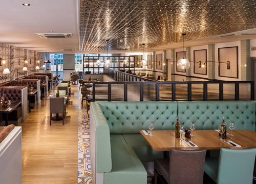 Wildwood 餐廳包含了熟食區(qū)域和后方的主要餐廳區(qū)域,雖然坐落在歷史建筑內(nèi),但室內(nèi)很少使用歷史元素,Wildwood Restaurants位于倫敦George Hotel in Crawley,原是一家中餐廳。餐廳的設(shè)計(jì)任務(wù)是在現(xiàn)有的復(fù)雜建筑內(nèi)融合品牌精神,同時(shí)保留一些關(guān)鍵的建筑元素。