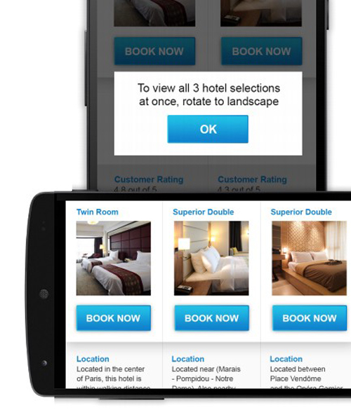 不同的屏幕方向下,用戶(hù)的瀏覽體驗(yàn)會(huì)完全不同的。用戶(hù)慣于在同一屏幕方向下完成全部的操作,所以提醒他們切換方向可以提升網(wǎng)站瀏覽的用戶(hù)體驗(yàn)。所以,當(dāng)你的網(wǎng)站偏向展示性,并且使用橫屏?xí)r瀏覽體驗(yàn)更佳的話,不妨使用行為召喚設(shè)計(jì)來(lái)提示用戶(hù)。