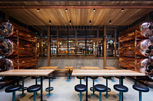 澳大利亞公司technē在墨爾本重建了90年代和80年代前的標(biāo)志性餐廳,建筑保留了原來標(biāo)志性的外觀,維多利亞時(shí)期的建筑在1896年曾是一家紡織廠。一個(gè)超大的多層啤酒花園的設(shè)計(jì)中心布滿了綠色植物,就像CBD街道中間的綠洲。