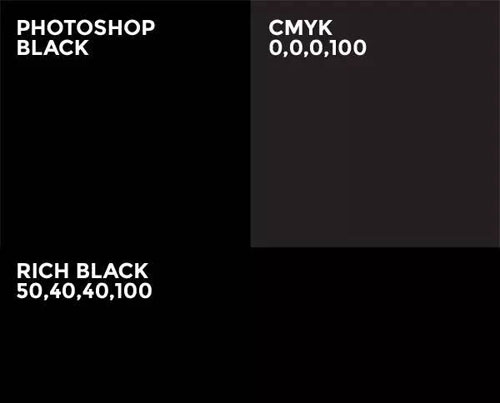這個數(shù)值總和過量了,記得要手動正確設置黑色色值。如果是黑色文字,可以是0,0,0,100(單黑),但如果是大片背景色就不合適了,因為在印刷中會看起來是深灰,而不是黑色。因此,大面積黑色最好使用4色黑,數(shù)值組合選擇固然多,但是50,40,40,100經驗證為最受歡迎之選,在單黑中混入其它色彩讓黑色看起來更厚重,并且4色數(shù)值總和也未超出安全范圍。