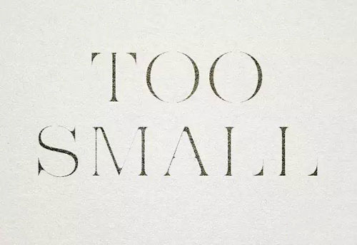 因此,字號建議不小于6磅,當然這也要取決于你選用的是什么字體。Helvetica Ultra Light的字體之細,應當在大于6磅的時候就已經看不清了。在準備印刷文件時千萬要記住,檢查文件中有沒有特別小的或特別細的元素。