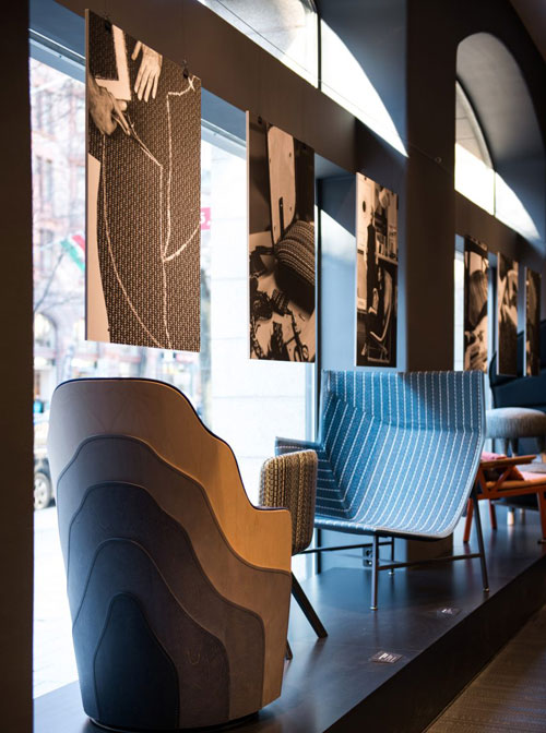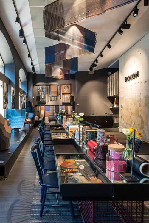 Bolon在展會上推出了兩款新產(chǎn)品:一種名為Wave的新Bolon Studio瓷磚,是傳統(tǒng)赤陶瓦屋頂?shù)膹澢螤?一種是由建筑師讓?努維爾設(shè)計的條紋編織乙烯基地板系列。Bolon還展示了與領(lǐng)先的家具設(shè)計師和生產(chǎn)商合作的一系列家具,他們通過結(jié)合Bolon紡織品重新詮釋了經(jīng)典家具的設(shè)計;這些家具都是一次性實驗品,這種經(jīng)驗可以幫助公司在未來開發(fā)一個專用的家具面料收藏庫。