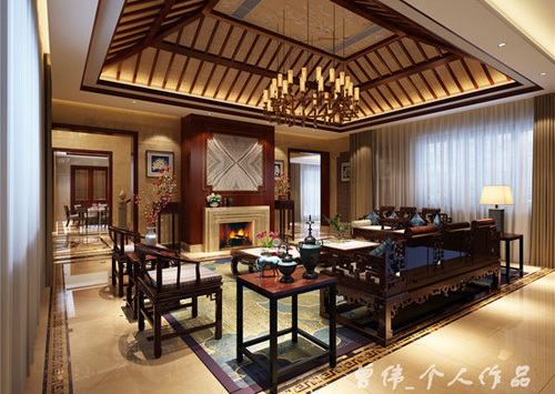 客廳之中中式味道的家具與寬敞的空間相得益彰,去除繁復的裝飾留下最精簡干練的線條,極大的提升了空間的寬闊感與舒適度。靜謐的綠、素簡的米、優(yōu)雅的龍泉青瓷與散發(fā)迷人魅力的黑色線條提升了空間氣質(zhì)。結合紅木家具上的白色真絲布藝坐墊,隱喻獨到的審美和氣度。一桌一椅中不僅彰顯著設計師的心意,也彰顯了主人的品味。