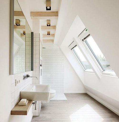 不同角度上的天窗帶來(lái)的光線(xiàn)是不同的,這間閣樓也許是角度的問(wèn)題也許是主人的故意為之讓到達(dá)空間的陽(yáng)光變得非常稀少。兩扇相隔較遠(yuǎn)的天窗讓整個(gè)洗漱區(qū)都藏在了陰影中,但由于空間狹小低矮的緣故,室內(nèi)異常明媚。