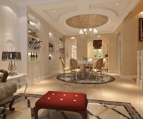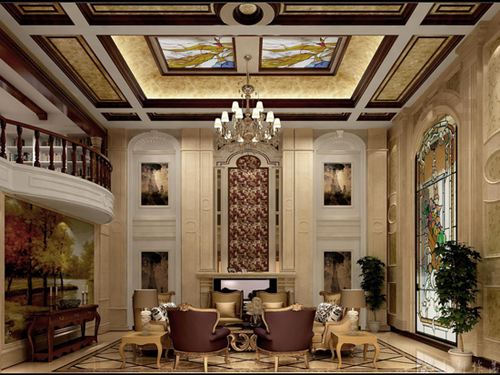 空間的布置多采用對(duì)稱式的布局方式,空間的色調(diào)以暖黃色為主,落地窗既引入了光線,又拓展了視野。屋頂?shù)难b飾線簡(jiǎn)潔明快,層次感較強(qiáng)。家具沒(méi)有過(guò)分的裝飾,一切從功能出發(fā),講究造型比例適度、空間結(jié)構(gòu)明確。