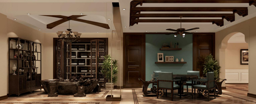 休閑區(qū)最引人注目的是它的寬大精美的家具,材質(zhì)采用櫻桃木、胡桃木等高檔實(shí)木,配以精致的雕刻,整體營(yíng)造出一種華麗、高貴、溫馨的感覺(jué)。廚柜造型獨(dú)特,又具有強(qiáng)大的收納功能,古玩與照片的擺放,令空間富于文化氣息。