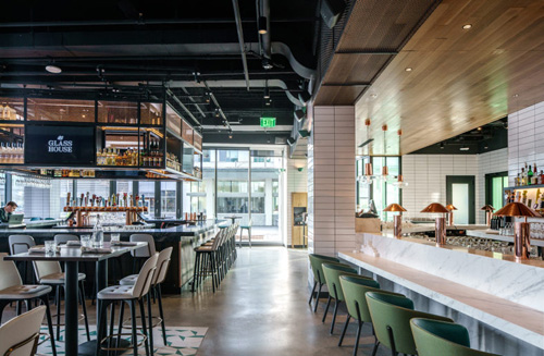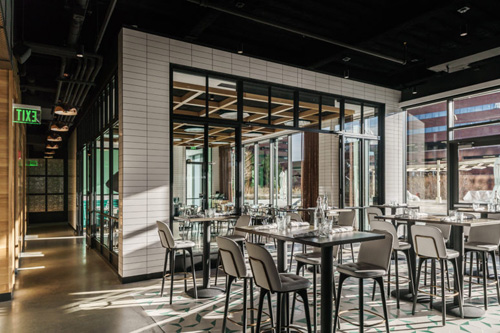 為了向肯德爾廣場的夢幻形象致敬,設(shè)計的一個重要元素是——房間內(nèi)的房間:它既是餐廳,也是會議、活動和社交活動的專用場所。其內(nèi)飾帶有懷舊的綠色色調(diào),在燈光、酒吧水龍頭、門把手和固定裝置上都有銅的細節(jié);定制的圖形具有類似的復古、好玩的精神。