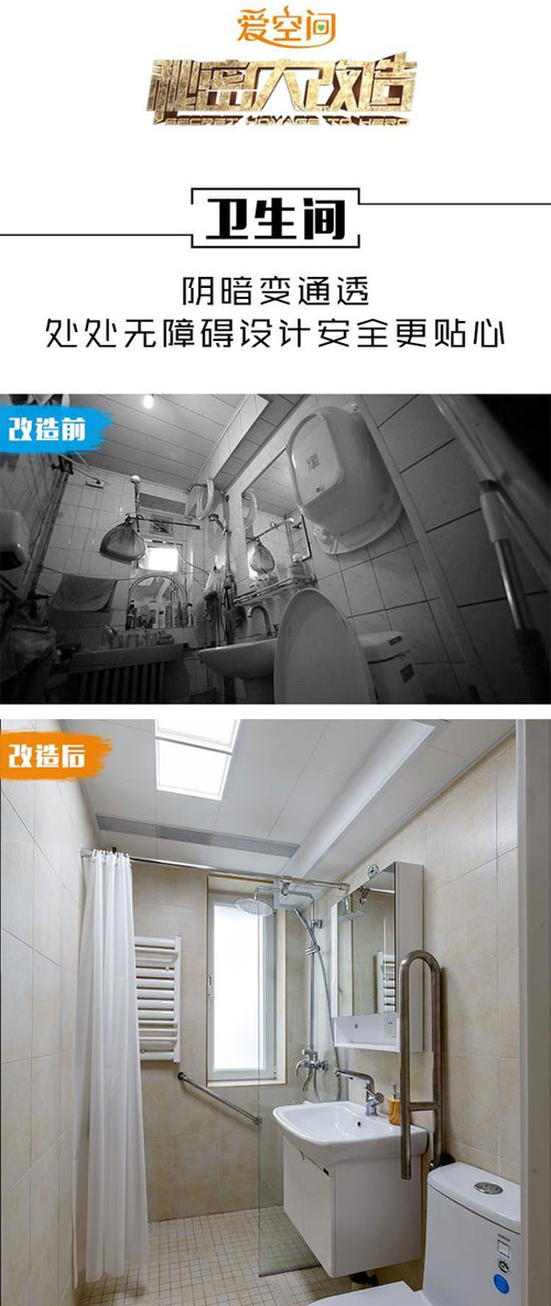 14天前,客廳原本只是昏暗的過道,主臥反而承擔(dān)著全家吃飯、會客和老人休息的功能??臻g功能區(qū)分相當(dāng)不合理,這樣的設(shè)置不僅影響老人休息,空間逼仄狹窄還使得居住相當(dāng)不便。衛(wèi)生間昏暗濕滑,這對老人家來說是個潛在的安全隱患。