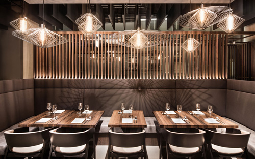 餐廳的現(xiàn)代設(shè)計風(fēng)格與亞歐融合的美食一樣精致而富有創(chuàng)意,在設(shè)計上他們使用了高品質(zhì)的材料和自然色彩來重新詮釋傳統(tǒng)亞洲建筑元素。