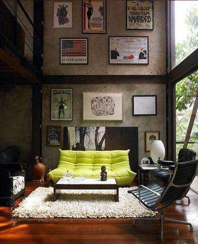 很有懷舊色彩的客廳設(shè)計(jì),小復(fù)式的客廳層高很高,剛好可以利用高大的墻面來(lái)展示自己喜歡的東西,比如長(zhǎng)時(shí)間收集的不同時(shí)代的畫(huà)作。