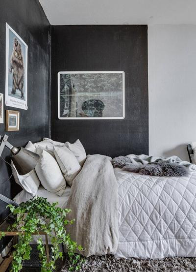 臥室最需要平靜的氛圍,墻面的白色與黑色搭配像是代表了白天與黑夜,淺色的床品中和了黑色的低沉氣質(zhì),讓睡眠氛圍更加安逸。