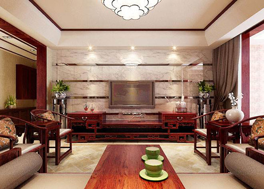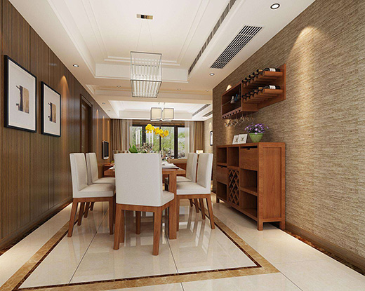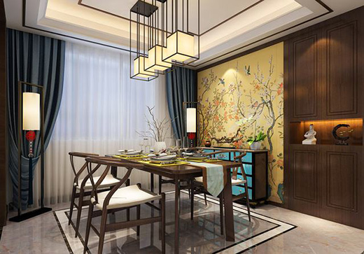 “新中式”裝飾風(fēng)格的住宅中,空間裝飾采用簡(jiǎn)潔、硬朗的直線條。