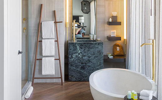 Craft Hospitality的所有者Sam Gelin推出了他在紐約市的第一家酒店MADE。他與洛杉磯設(shè)計(jì)公司Studio MAI合作,設(shè)計(jì)了一個(gè)現(xiàn)代化的外觀,整個(gè)酒店空間都充滿了木材元素。酒店擁有各種公共區(qū)域,舒適的沙發(fā)與木條凳和隱藏的照明相結(jié)合,營(yíng)造出舒適輕松的環(huán)境。酒店還設(shè)有一間名為Ferris的餐廳,擁有木墻和輕松的座位,并設(shè)有一個(gè)名為Paper的茶/咖啡區(qū)。酒店的18樓設(shè)有Good Behaviour,這是一間享有紐約市全景的Tiki風(fēng)格休息室,供應(yīng)雞尾酒和精釀啤酒。