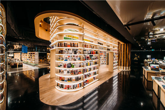 設(shè)計(jì)團(tuán)隊(duì)大膽使用黑色作為主色調(diào),黑色的深沉基調(diào)配以木質(zhì)暗金,呈現(xiàn)出黑金的視覺效果,不僅可以在設(shè)計(jì)上凸顯產(chǎn)品與主題區(qū)域,進(jìn)一步強(qiáng)調(diào)峻佳設(shè)計(jì)“Design Beyond Eyes”的體驗(yàn)式設(shè)計(jì)理念,同時(shí)書店給人印象是無限智慧和無窮的探索,黑色與這隱喻正相配合。